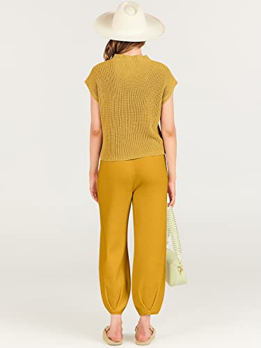 ANRABESS Women's Two Piece Outfits Sweater Sets Knit Pullover Tops and Casual Pants Tracksuit Matching Sets Loungewear 2023 Summer Fashion Clothes Sweat Suit 953qiankaqi-M Khaki White