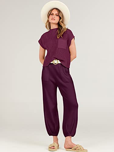 Perfect fit - XS=US(0-2), S=US(4-6), M=US(8-10), L=US(12-14), XL=US(16-18),XXL=US(20-22). Our Two Piece Outfits are available in various sizes ranging from XS to XXL, ensuring a perfect fit for everyone. Refer to our rich description for more details. - Fashionable style - Flaunt your fashion statement with this stylish Two Piece Outfit, featuring a cap shoulder knit crop top and high waist taper knit pants for a trendy and chic look.