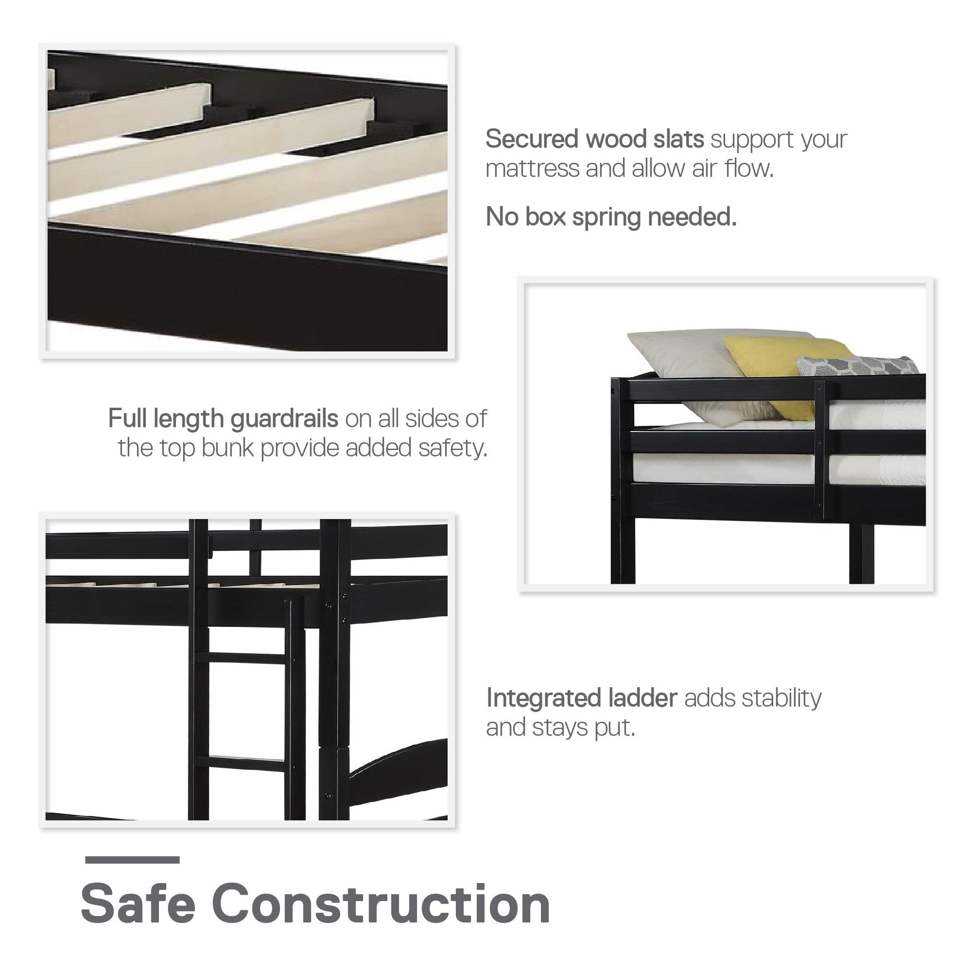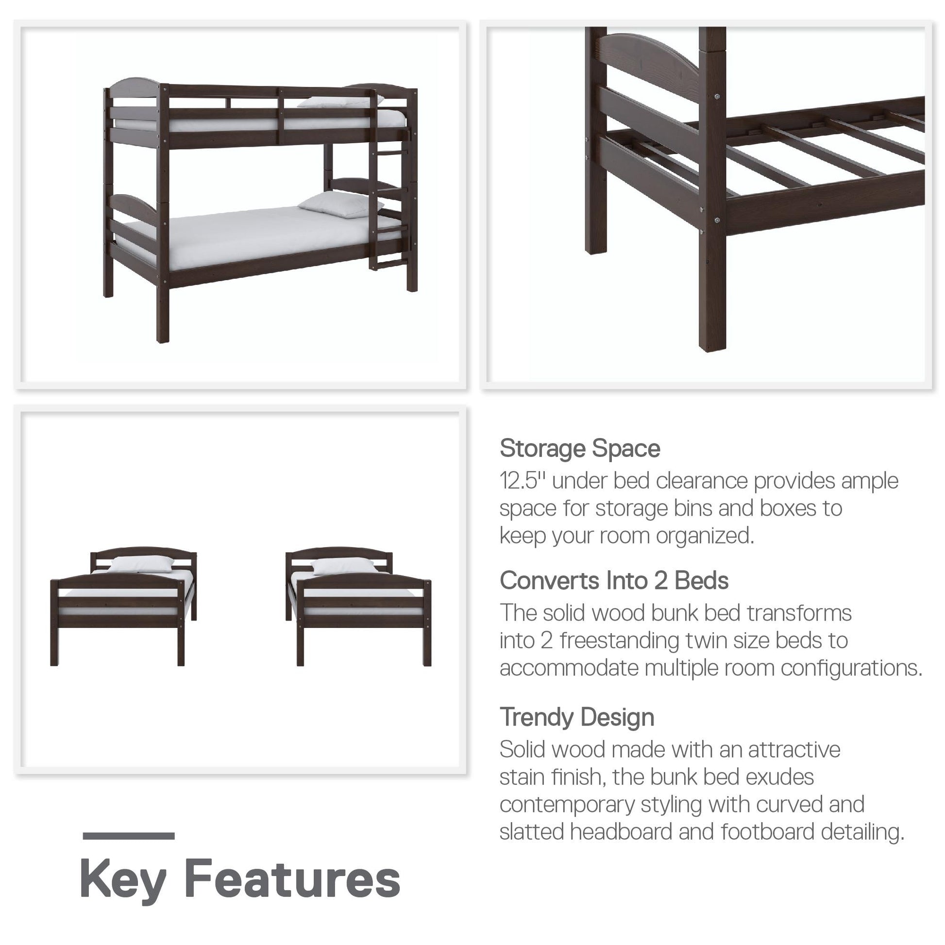 Better Homes & Gardens Leighton Wood Twin-Over-Twin Bunk Bed, Mocha