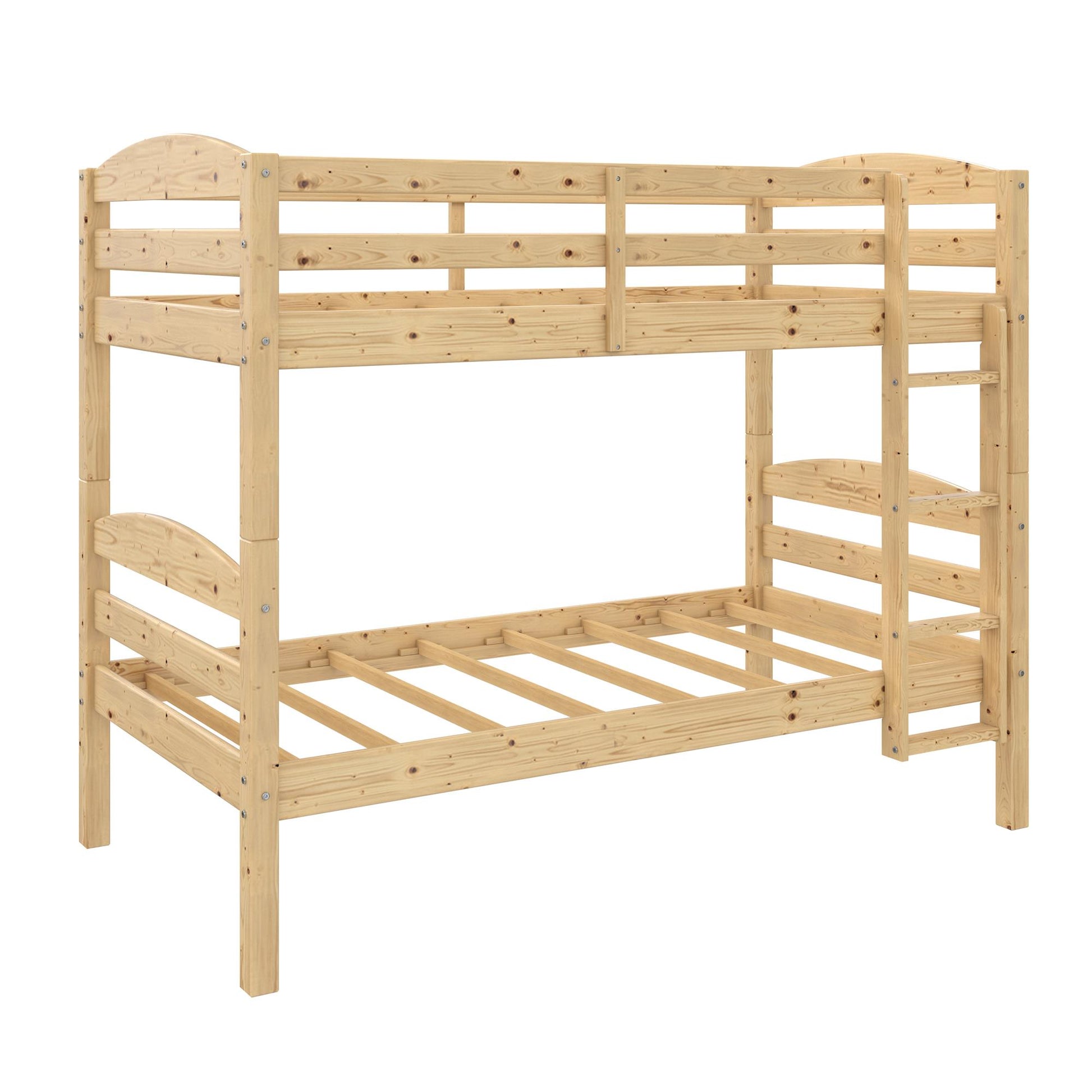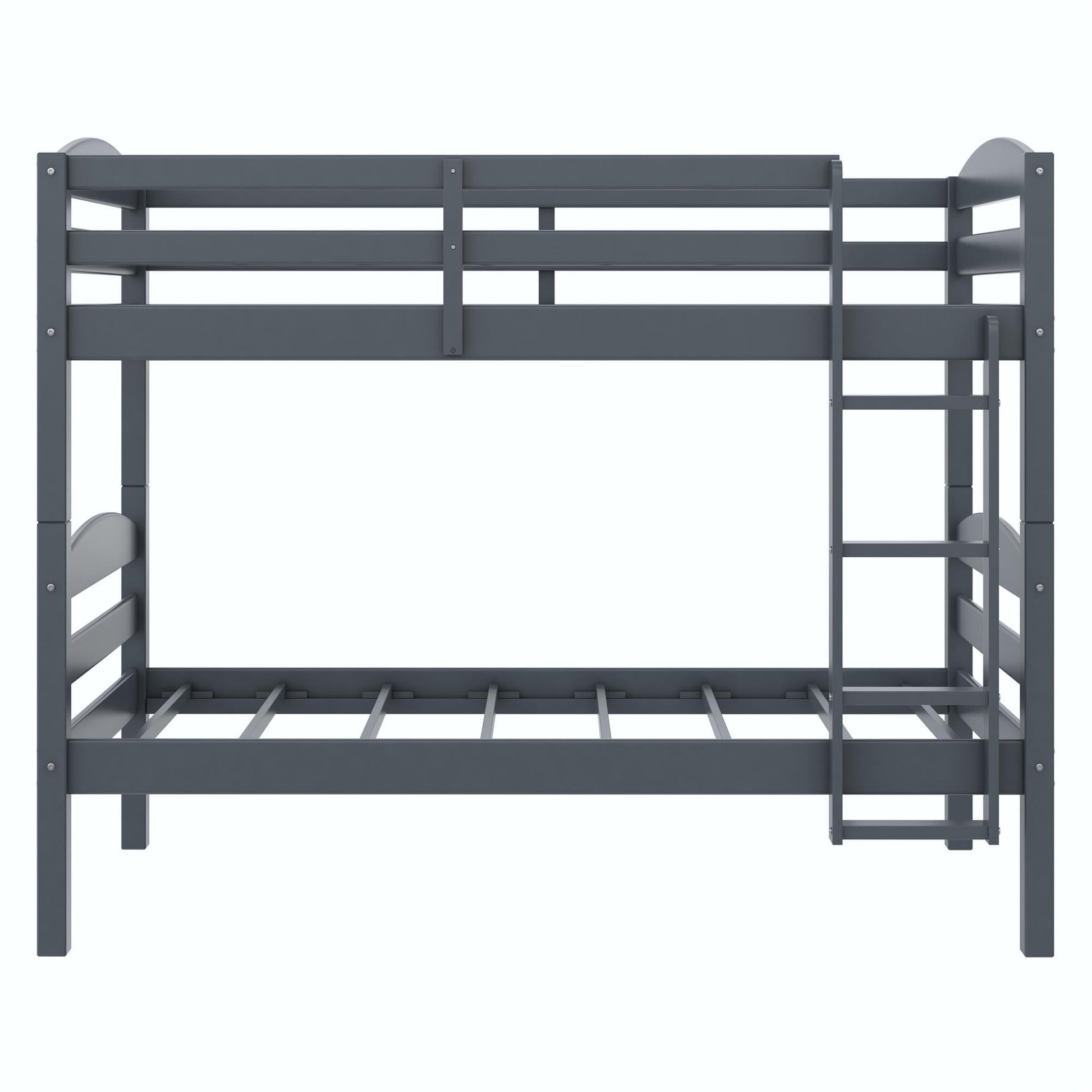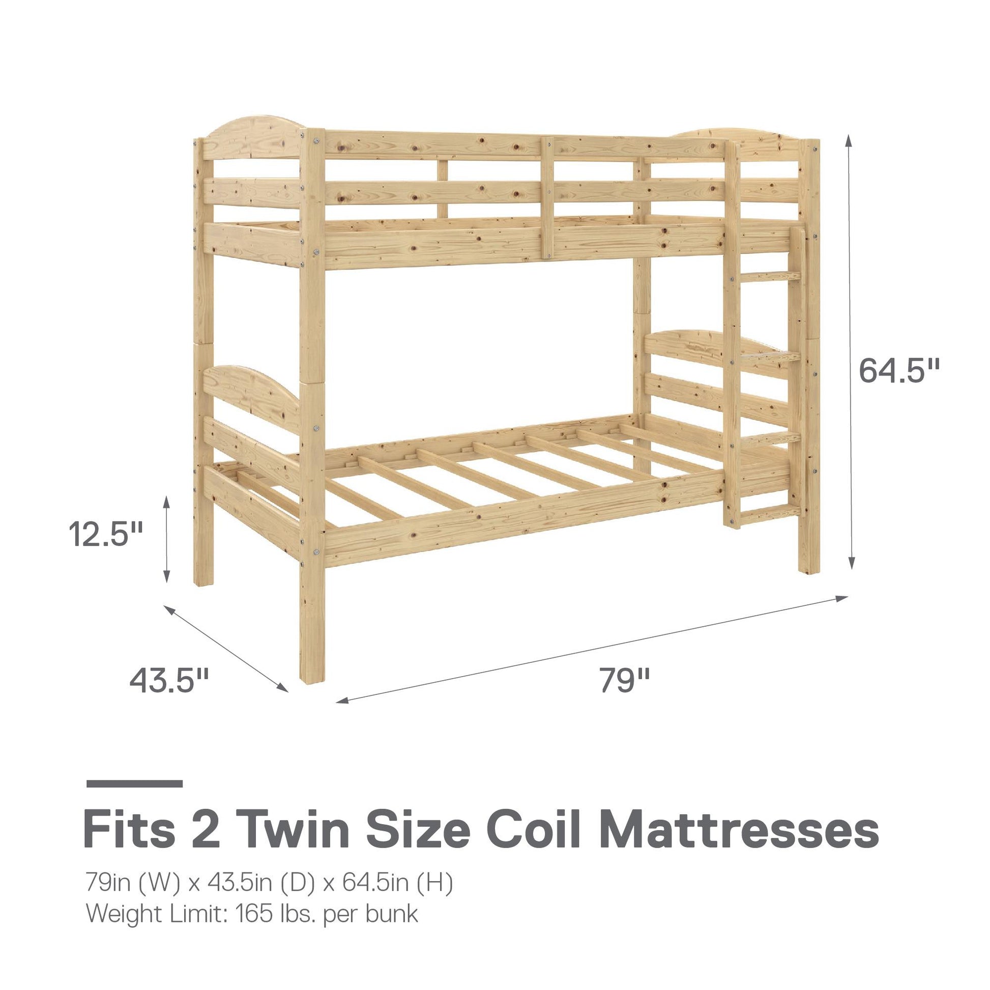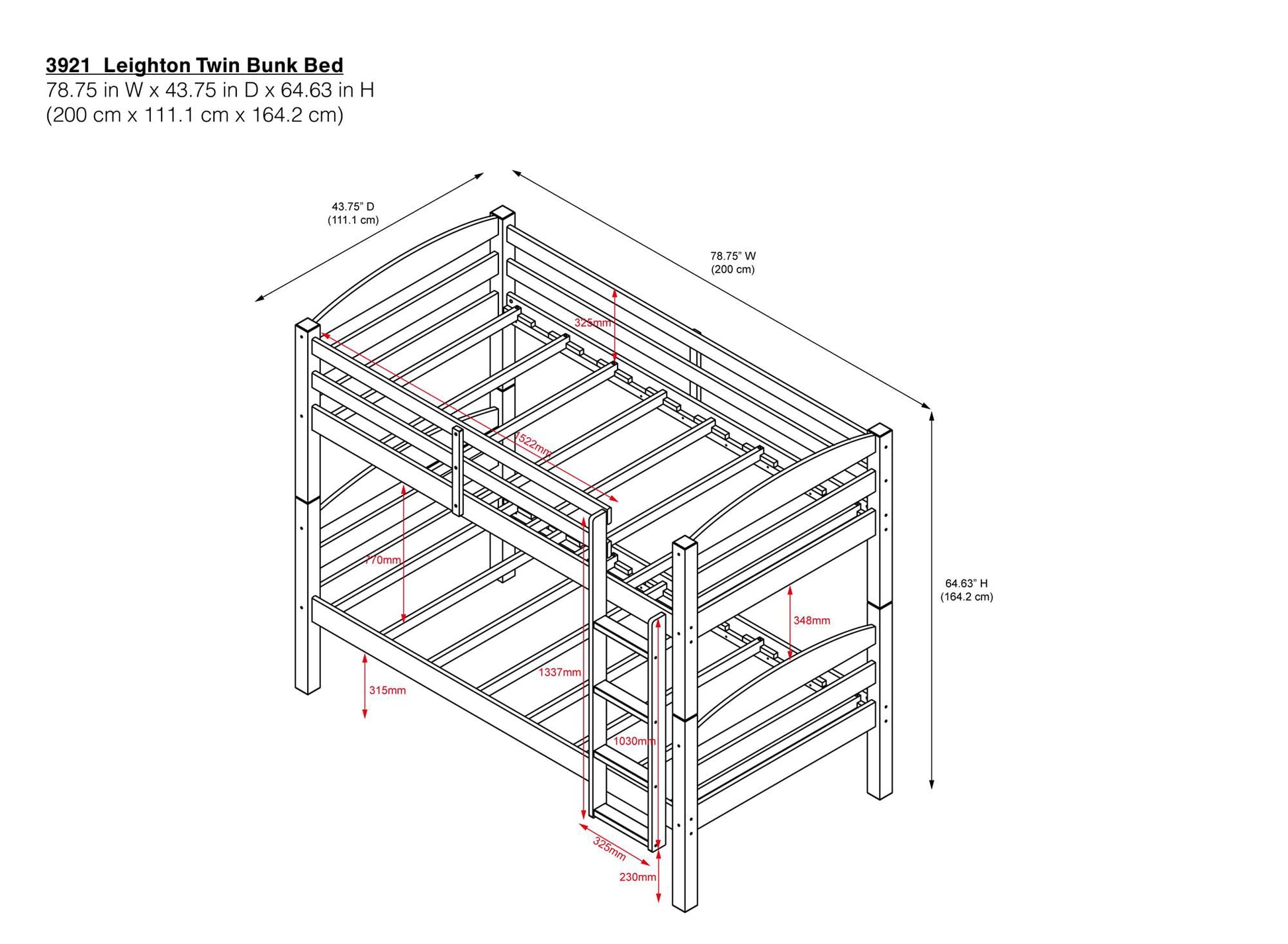 Create fun and restful environment with the Better Homes & Gardens Leighton Twin-over-Twin Bunk Bed. An American classic, its solid wood construction features clean and simple lines, creating a timeless look that easily coordinates with any room style. Available in multiple color options, the bunk bed’s horizontal slats and slightly curved headboards come together to pay homage to its Craftsman inspired design. The Leighton is equipped with two full-length guardrails on the top bunk and a secure, easy-to-climb 4-step ladder providing access for children while leaving parents worry free. The Better Homes & Gardens Leighton Twin-over-Twin Bunk Bed can be unstacked to become two stand-alone beds making this a wonderful, versatile choice your children and their friends will love. Better Homes & Gardens Leighton Wood Twin-Over-Twin Bunk Bed, Mocha *- Solid wood bunk bed for kids. Easily converts into two stand-alone twin beds. *- Designed to accommodate a mattress without a box spring. Only coil spring mattresses are to be used on both bunk levels; mattresses sold separately. *- Features one ladder to ensure safe climbing and bed support slats included for added support and durability. Top bunk designed for children ranging from 6 years of age to young teenagers. *- Meets U.S. Safety Standards. Conveniently ships in 1 box. Assembly required. 1-year limited warranty. *- Assembled Dimensions: 43.75” W x 78.75” D x 64.62” H.