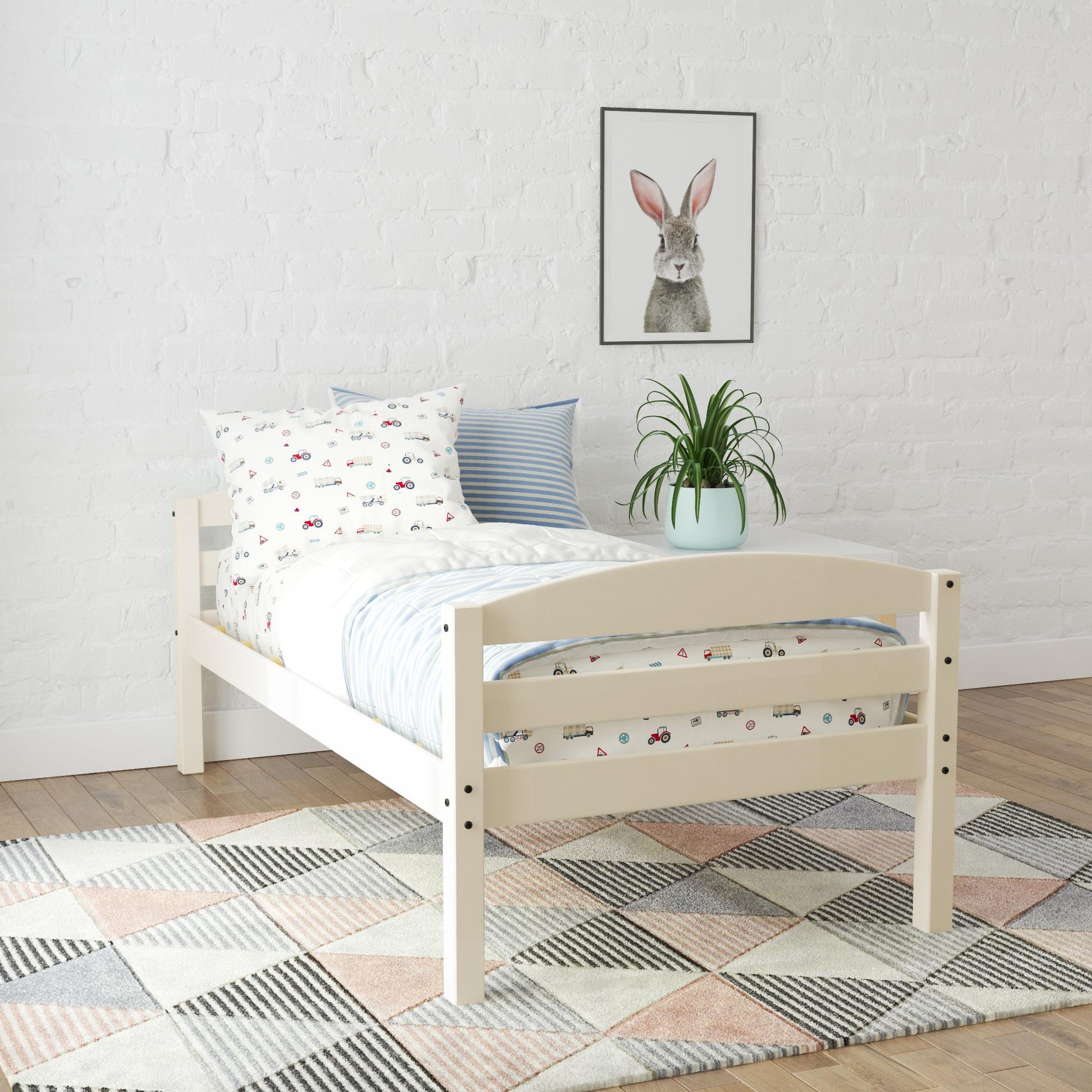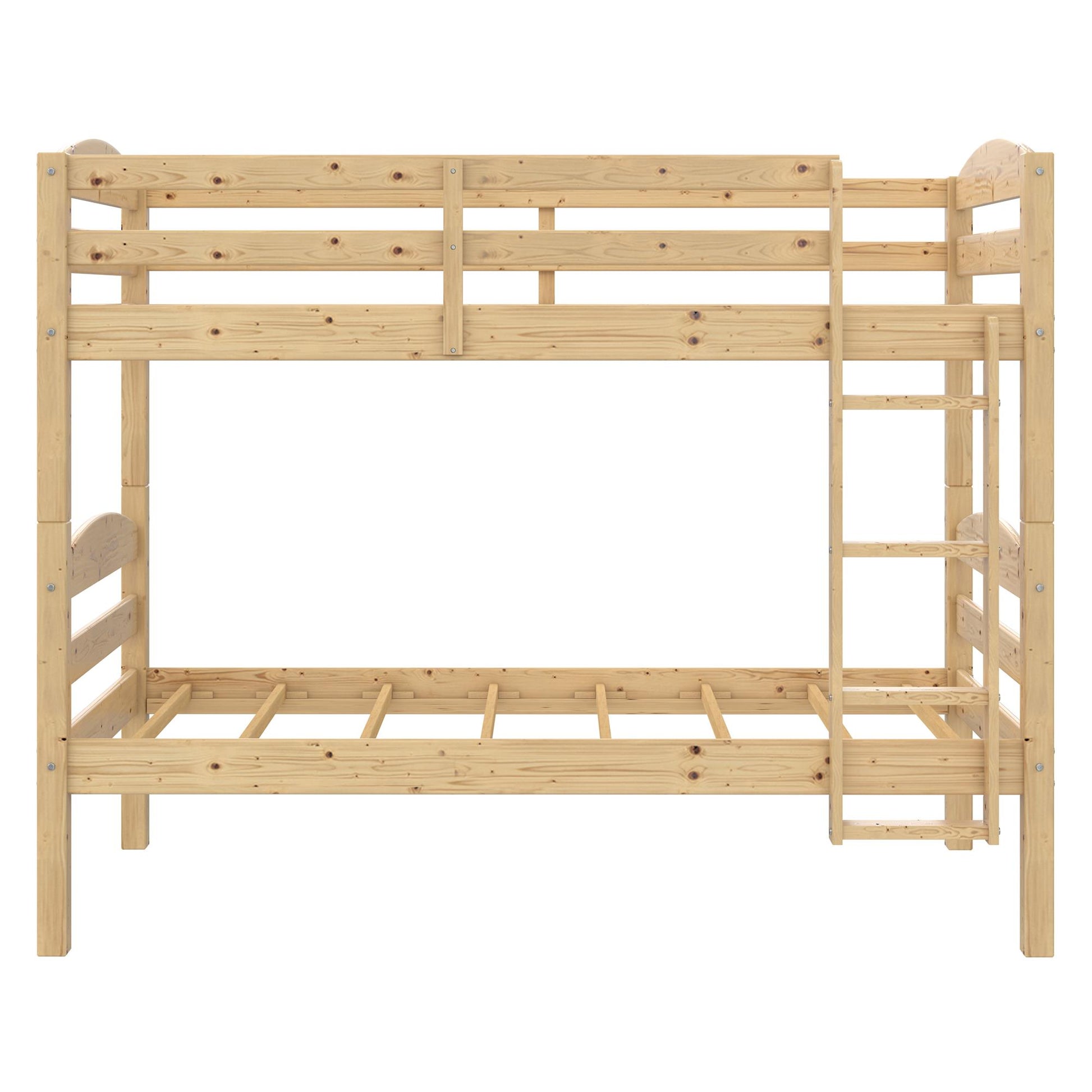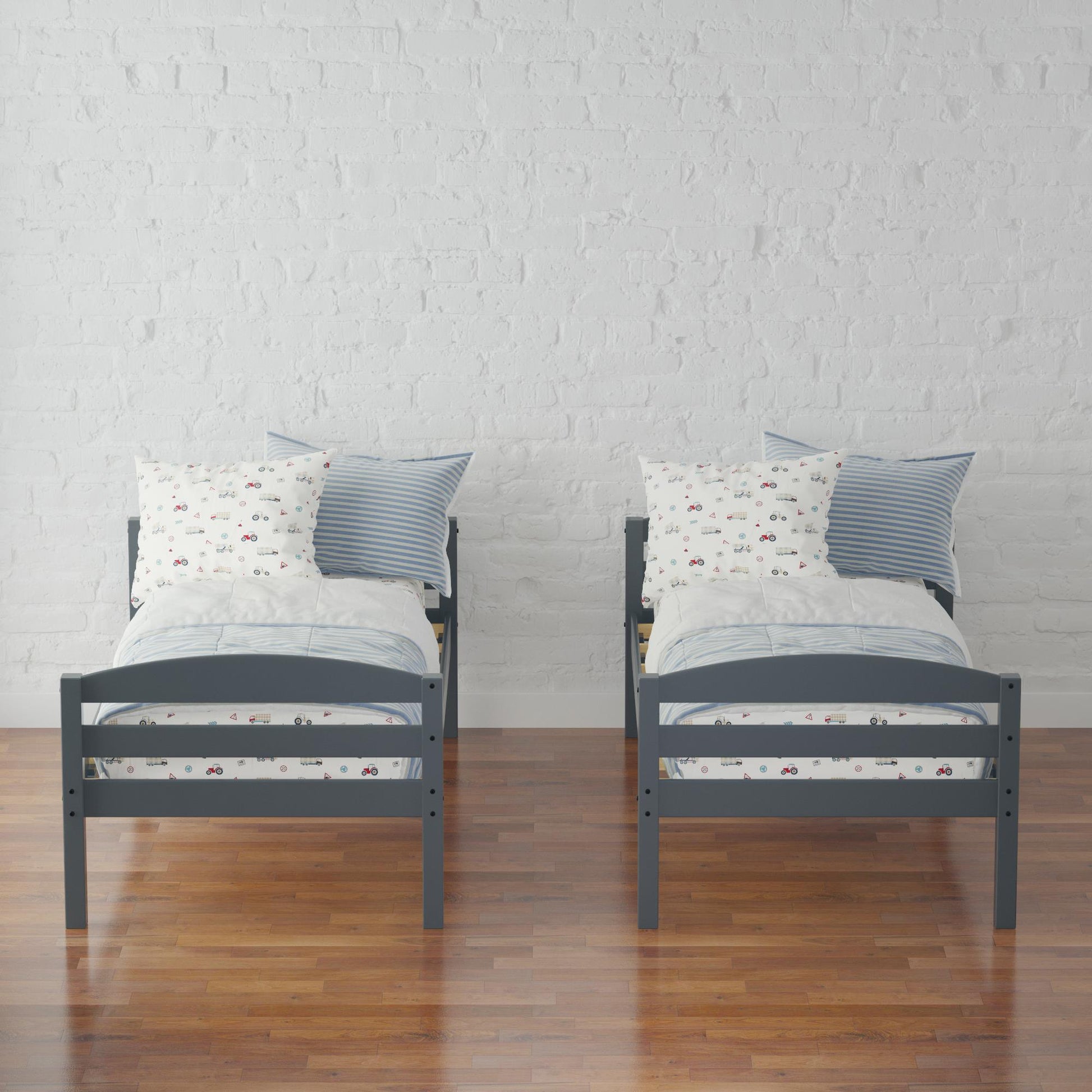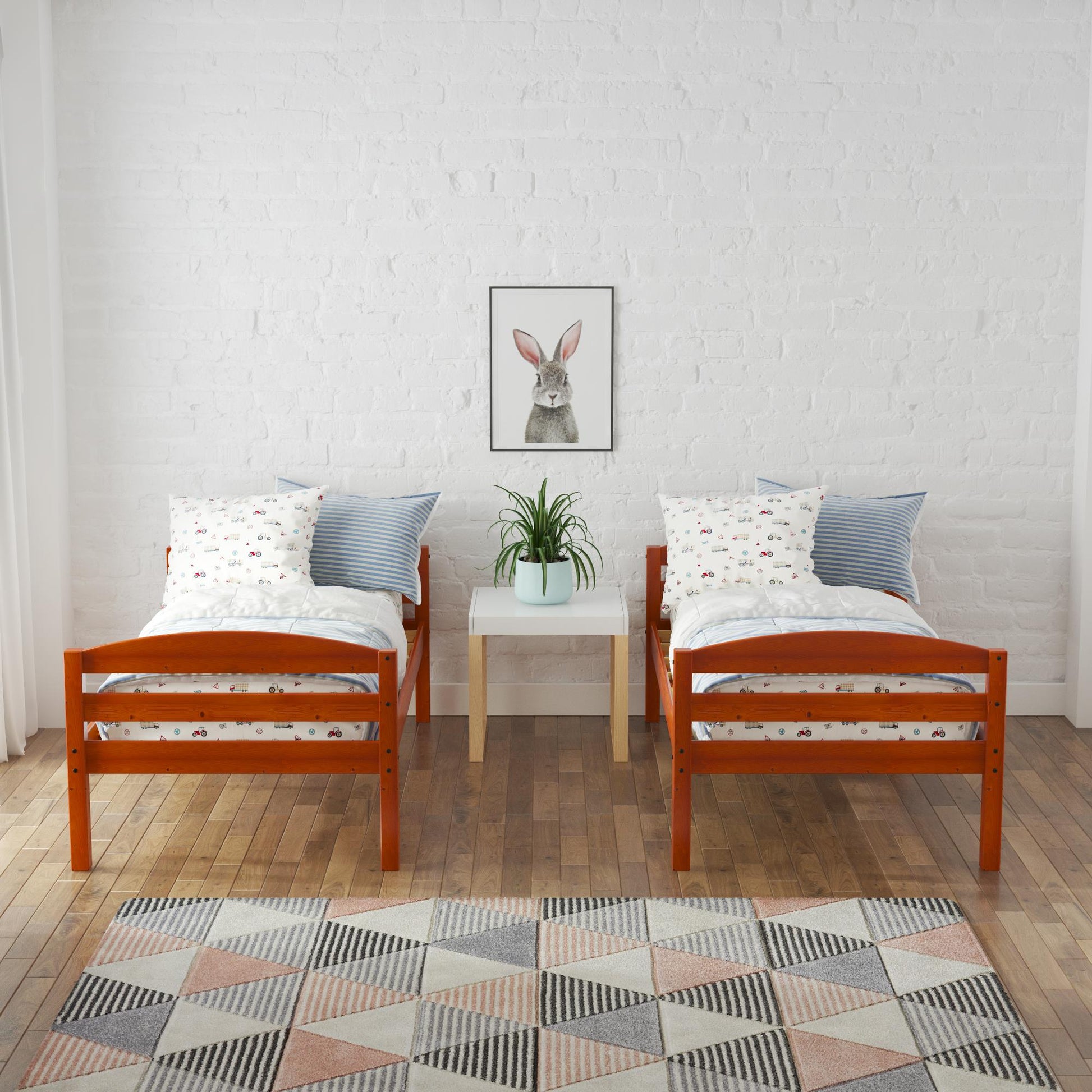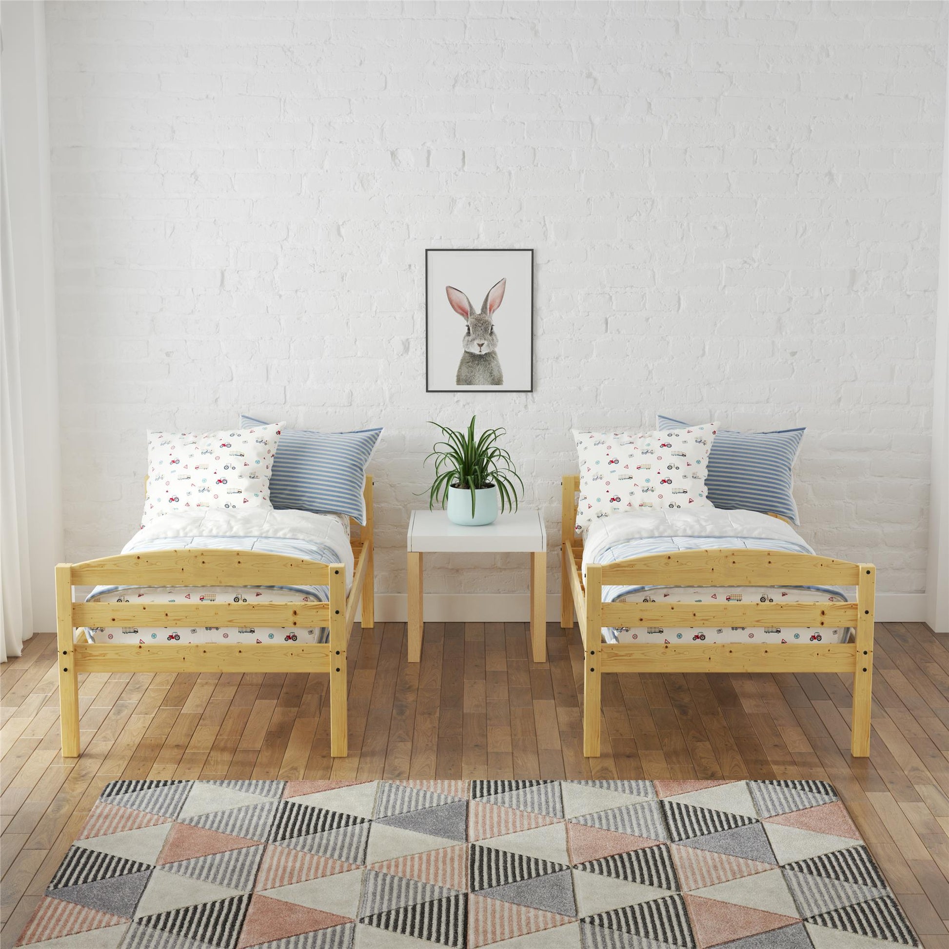 Create fun and restful environment with the Better Homes & Gardens Leighton Twin-over-Twin Bunk Bed. An American classic, its solid wood construction features clean and simple lines, creating a timeless look that easily coordinates with any room style. Available in multiple color options, the bunk bed’s horizontal slats and slightly curved headboards come together to pay homage to its Craftsman inspired design. The Leighton is equipped with two full-length guardrails on the top bunk and a secure, easy-to-climb 4-step ladder providing access for children while leaving parents worry free. The Better Homes & Gardens Leighton Twin-over-Twin Bunk Bed can be unstacked to become two stand-alone beds making this a wonderful, versatile choice your children and their friends will love. Better Homes & Gardens Leighton Wood Twin-Over-Twin Bunk Bed, Mocha *- Solid wood bunk bed for kids. Easily converts into two stand-alone twin beds. *- Designed to accommodate a mattress without a box spring. Only coil spring mattresses are to be used on both bunk levels; mattresses sold separately. *- Features one ladder to ensure safe climbing and bed support slats included for added support and durability. Top bunk designed for children ranging from 6 years of age to young teenagers. *- Meets U.S. Safety Standards. Conveniently ships in 1 box. Assembly required. 1-year limited warranty. *- Assembled Dimensions: 43.75” W x 78.75” D x 64.62” H.