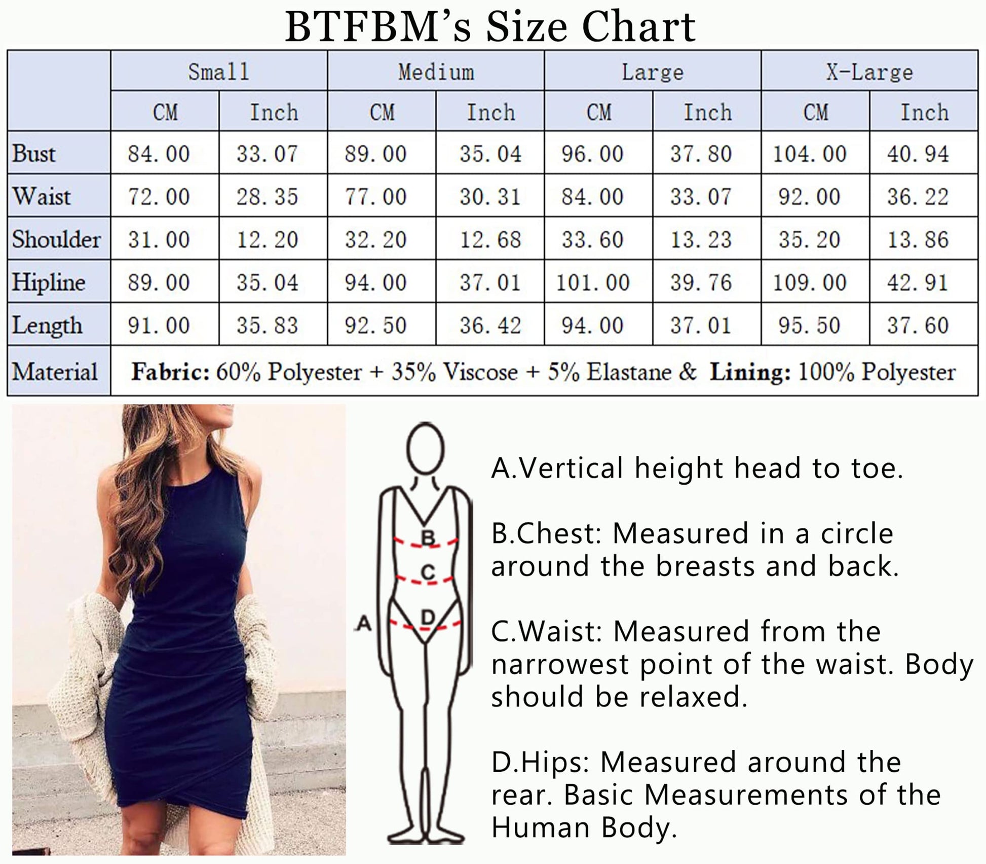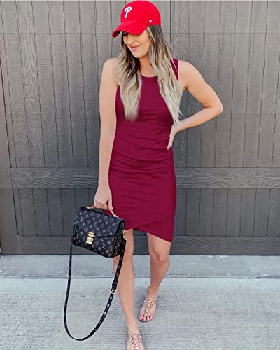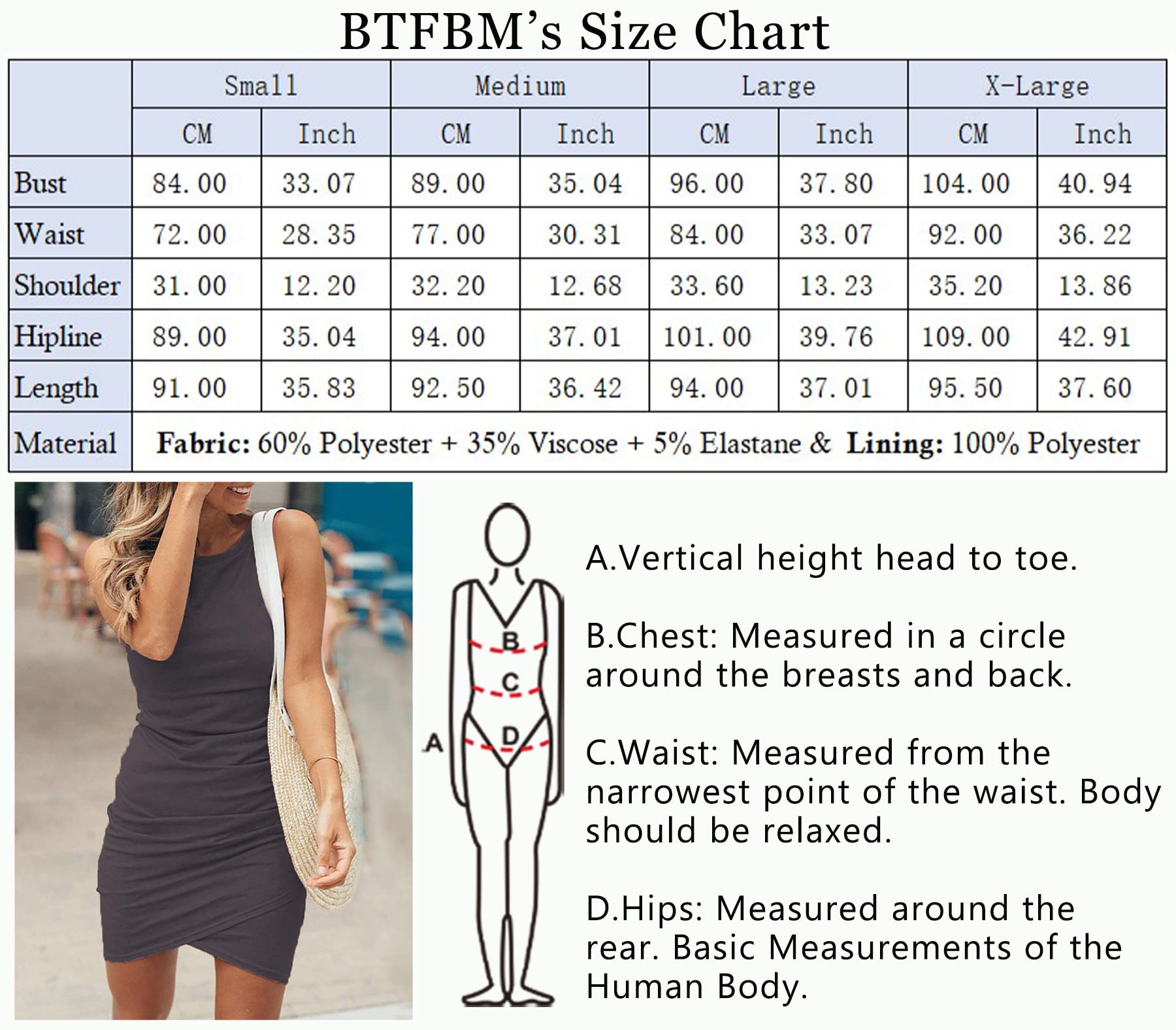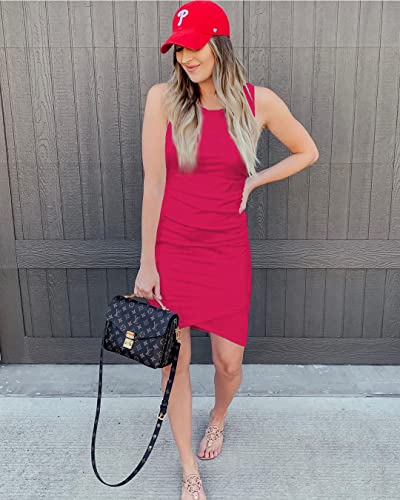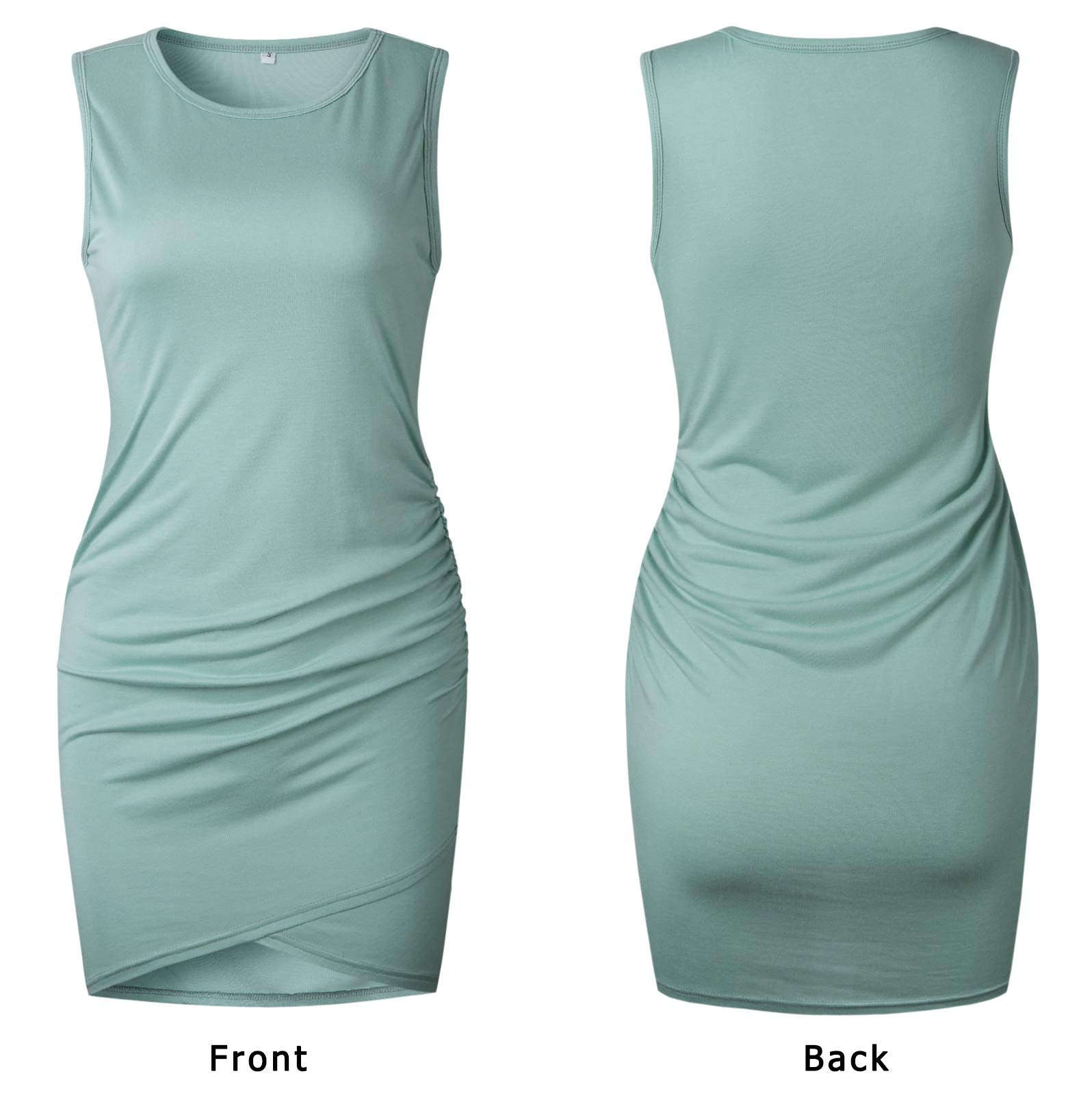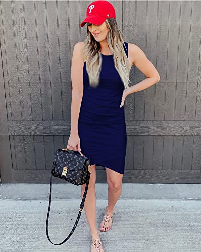 BTFBM Women Casual Dress Crew Neck Ruched Summer Sleeveless Tank Bodycon Shirt Short Mini Dresses (106Black, Medium)