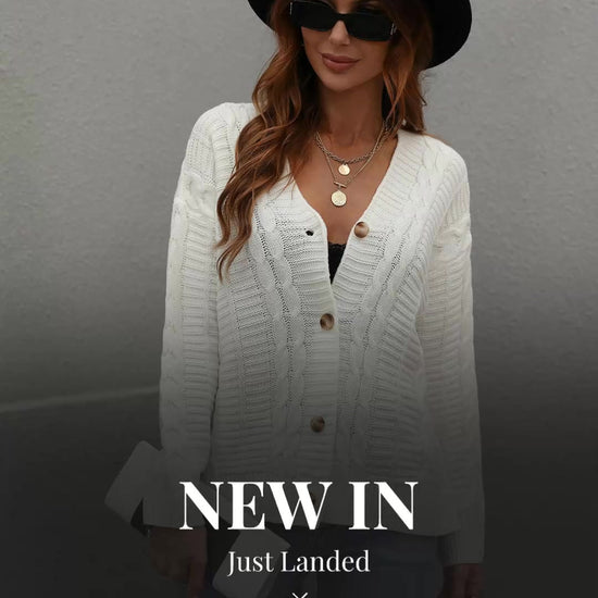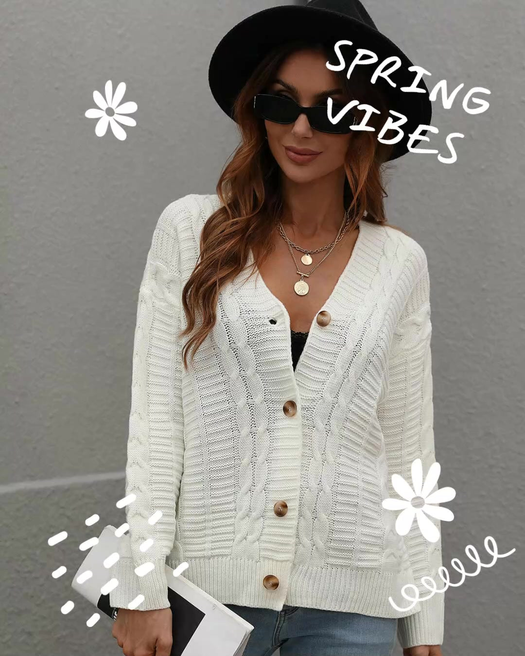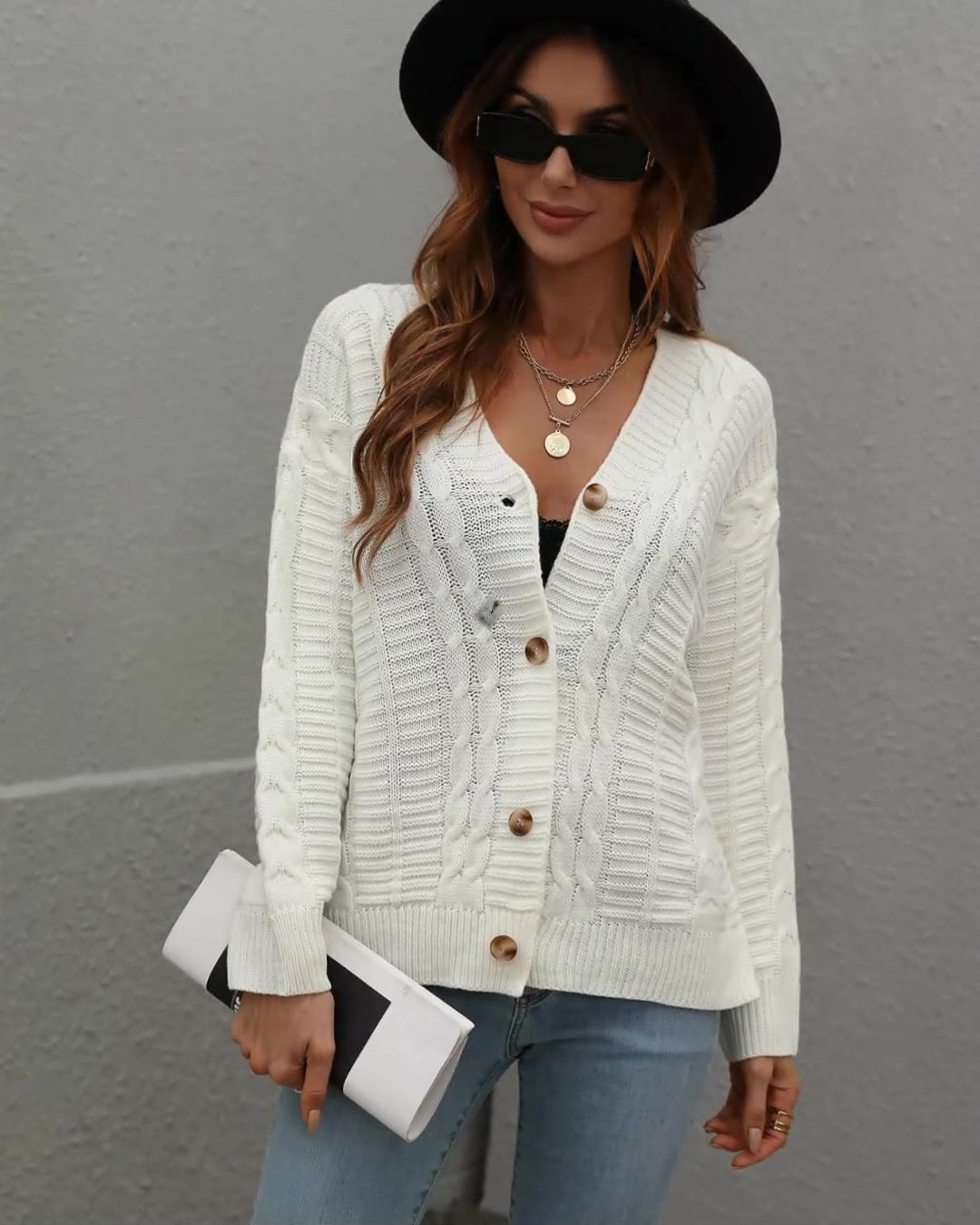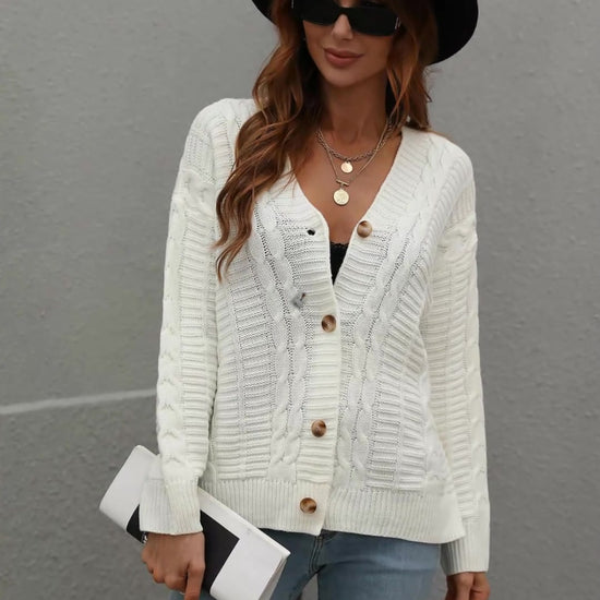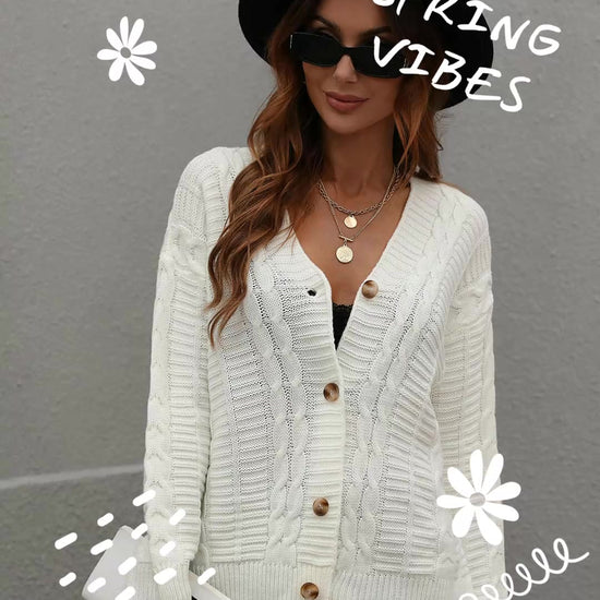 Cable-Knit Ribbed Trim V-Neck Cardigan