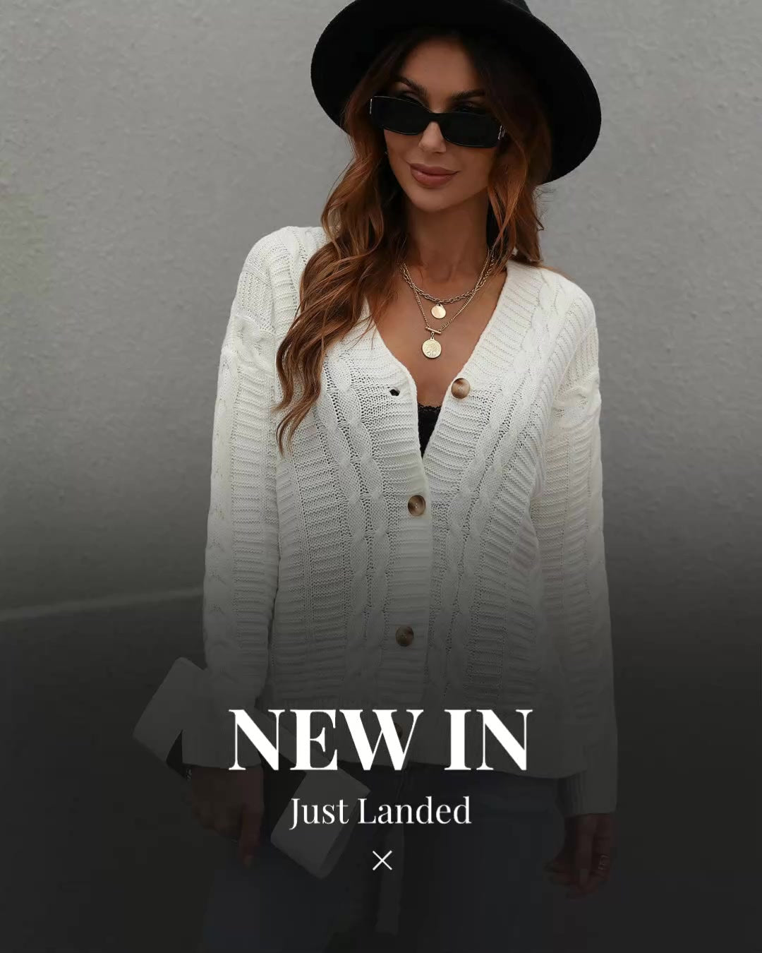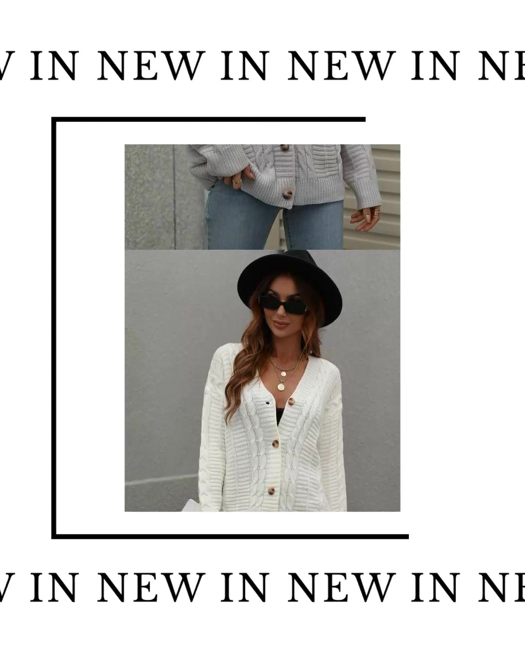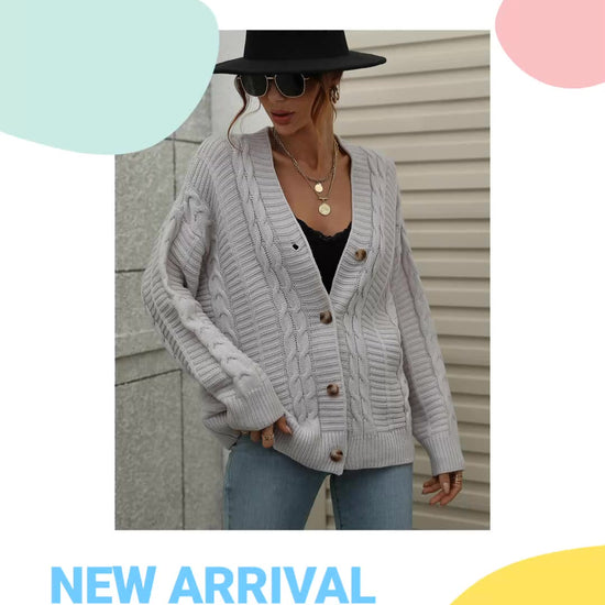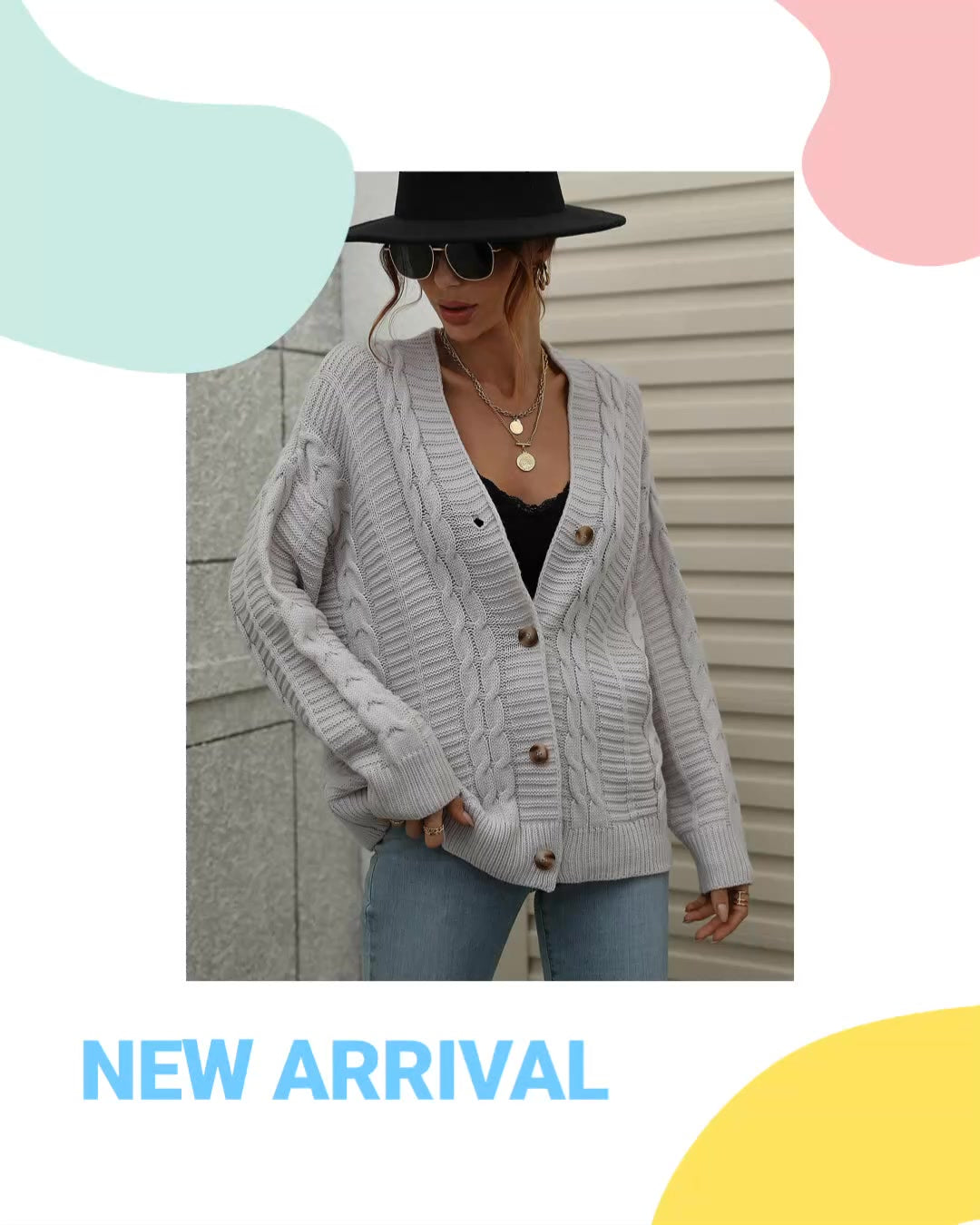 Cable-Knit Ribbed Trim V-Neck Cardigan