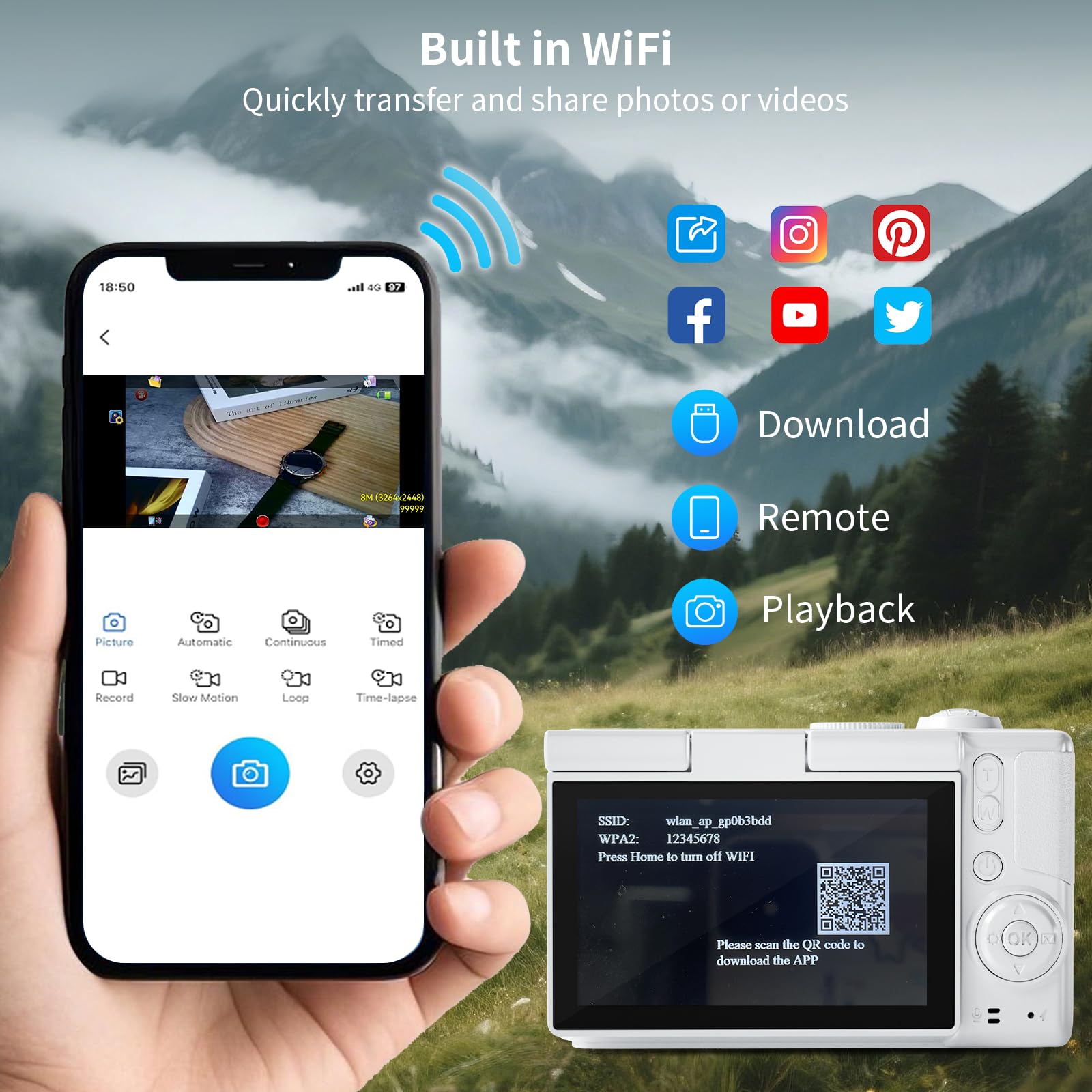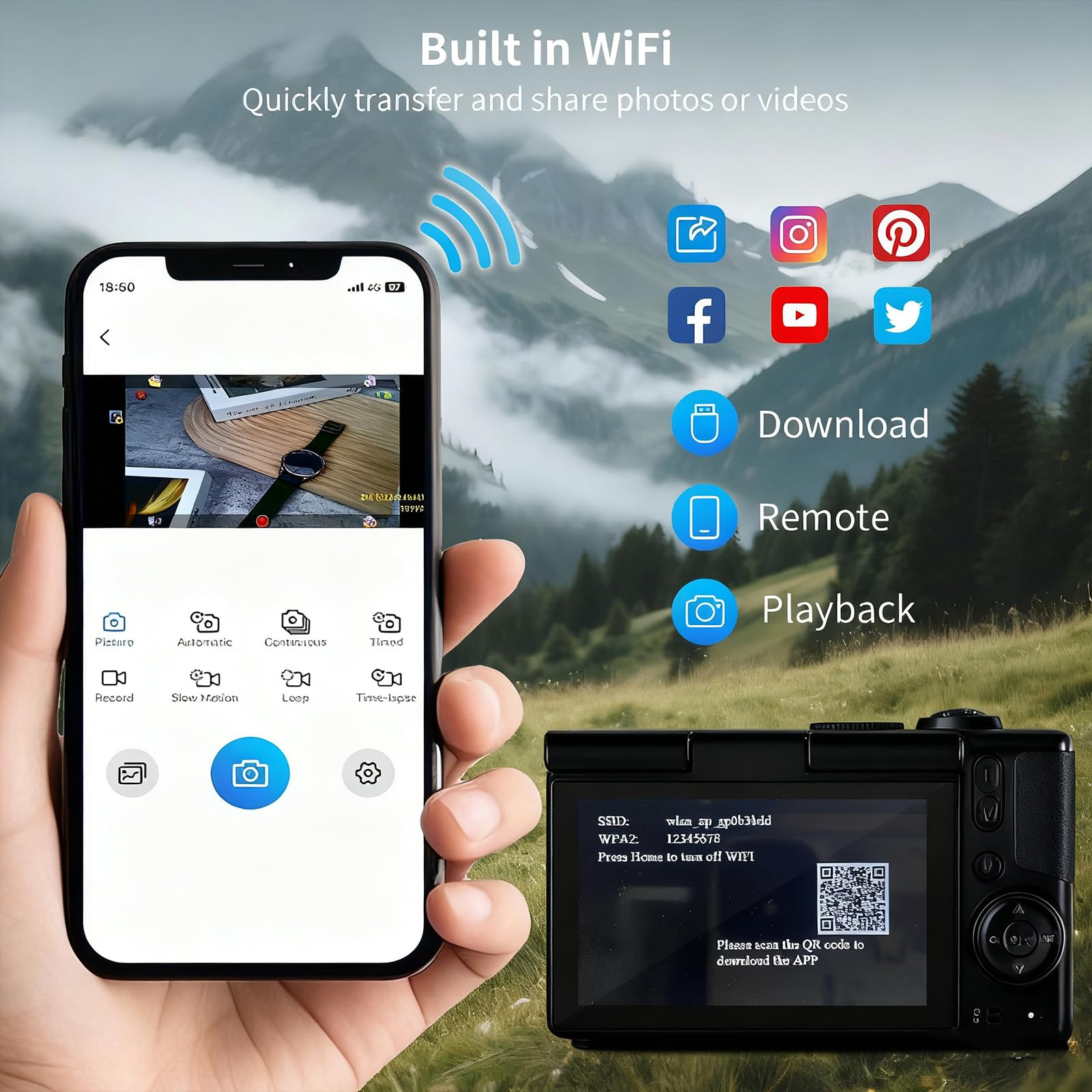 - WiFi and Bluetooth: The WiFi digital camera 4k is equipped with high-speed WiFi and Bluetooth 5.0 modules, best vlogging camera 4k video camera for vlogging Connect your smart device with just one click to transfer high-definition photos or videos to your phone, tablet, or computer. The content creator camera 4k ultra HD camera instantly shares on social media platforms without the need for a data cable.4k camera for video recording camera for youtube.Easily handle composition.