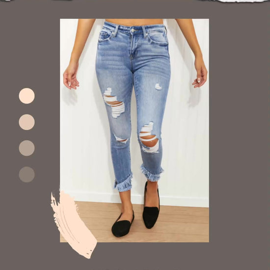 These cropped skinny jeans are a no-brainer! Featuring a mid-rise, moderate distressing, and frayed double-layered hems, these jeans will take your look from basic to chic in no time!Sizing category: Full size runPicture style: StudioPattern type: SolidStyle: Chic, girl next doorFeatures: Distressed, raw hemLength: CroppedMaterial: 98% cotton, 2% spandexStretch: Slightly stretchySheer: Semi-sheerBody: Not linedCare instructions: Machine wash cold. Tumble dry low.ImportedModels are wearing sizes 26 and 34.Product measurements:24: hip 28 in, rise 8 in, inseam 25 in, waist 23 in25: hip 29 in, rise 8.5 in, inseam 25 in, waist 24 in26: hip 30 in, rise 9 in, inseam 25 in, waist 25 in27: hip 31 in, rise 9 in, inseam 25 in, waist 26 in28: hip 32 in, rise 9.5 in, inseam 25 in, waist 27 in29: hip 33 in, rise 9.5 in, inseam 25 in, waist 28 in30: hip 34 in, rise 10 in, inseam 25.5 in, waist 29 in31: hip 36 in, rise 10.5 in, inseam 25.5 in, waist 31 in32: hip 37 in, rise 10.5 in, inseam 25.5 in, waist 33 in34: hip 40 in, rise 11 in, inseam 25.5 in, waist 35 in36: hip 42 in, rise 11.5 in, inseam 25.5 in, waist 37 in38: hip 44 in, rise 12 in, inseam 25.5 in, waist 39 inZenana is a leading clothing company offering sustainable, ethical, and affordable basics made from quality fabrics, to ensure that they will last for many seasons to come. Their main goal is to provide environmentally friendly clothing at an affordable price.