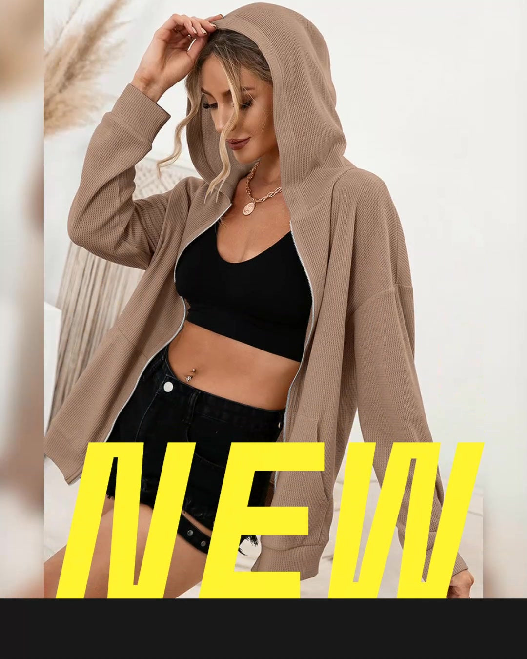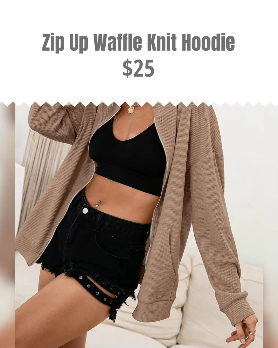 Zip Up Waffle Knit Hoodie